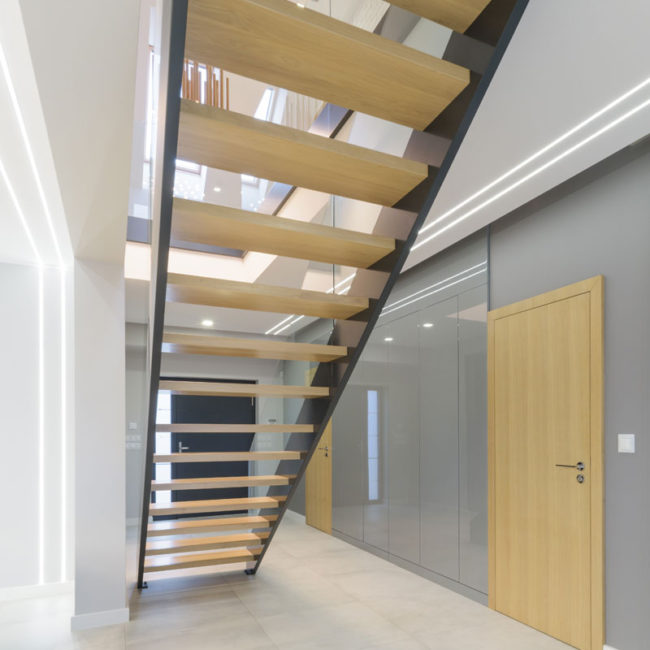 Wykonane z drewna schody ażurowe z efektownymi prześwitami wyróżniają się wizualną lekkością i są wspaniałą ozdobą wnętrza domu. Najczęściej buduje się je w salonie i holu. Ich oryginalna konstrukcja, mimo że subtelna, zwraca uwagę. Drewniane schody ażurowe buduje się z twardego drewna klejonego warstwowo – np. dębu, jesionu lub buku.