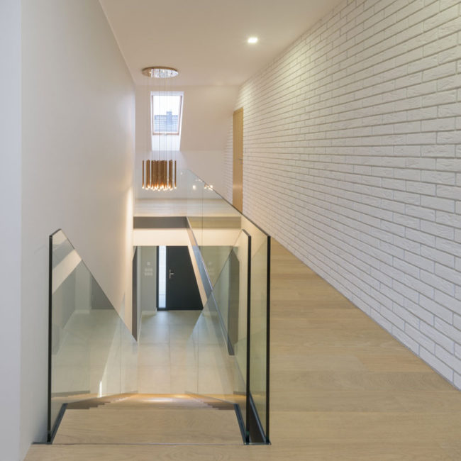Nowoczesne schody ze szklaną balustradą